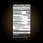 Brown Sugar, Sea Salt, Spices, Garlic, Onion, Chili Powder, Ground Mustard Seed, Rice Hulls (natural anti-caking agent), Datil Pepper.